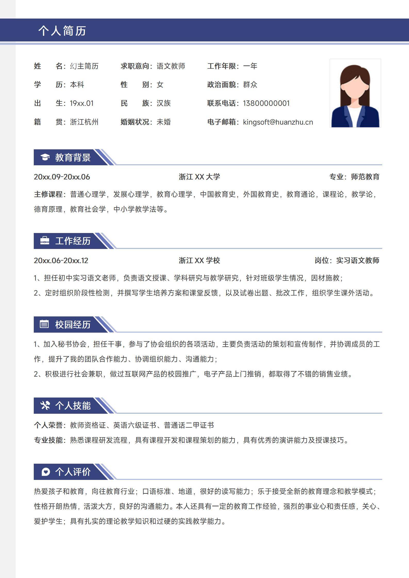于2026-02-15 18:55 下载了:英语老师免费求职简历模板,并评价: