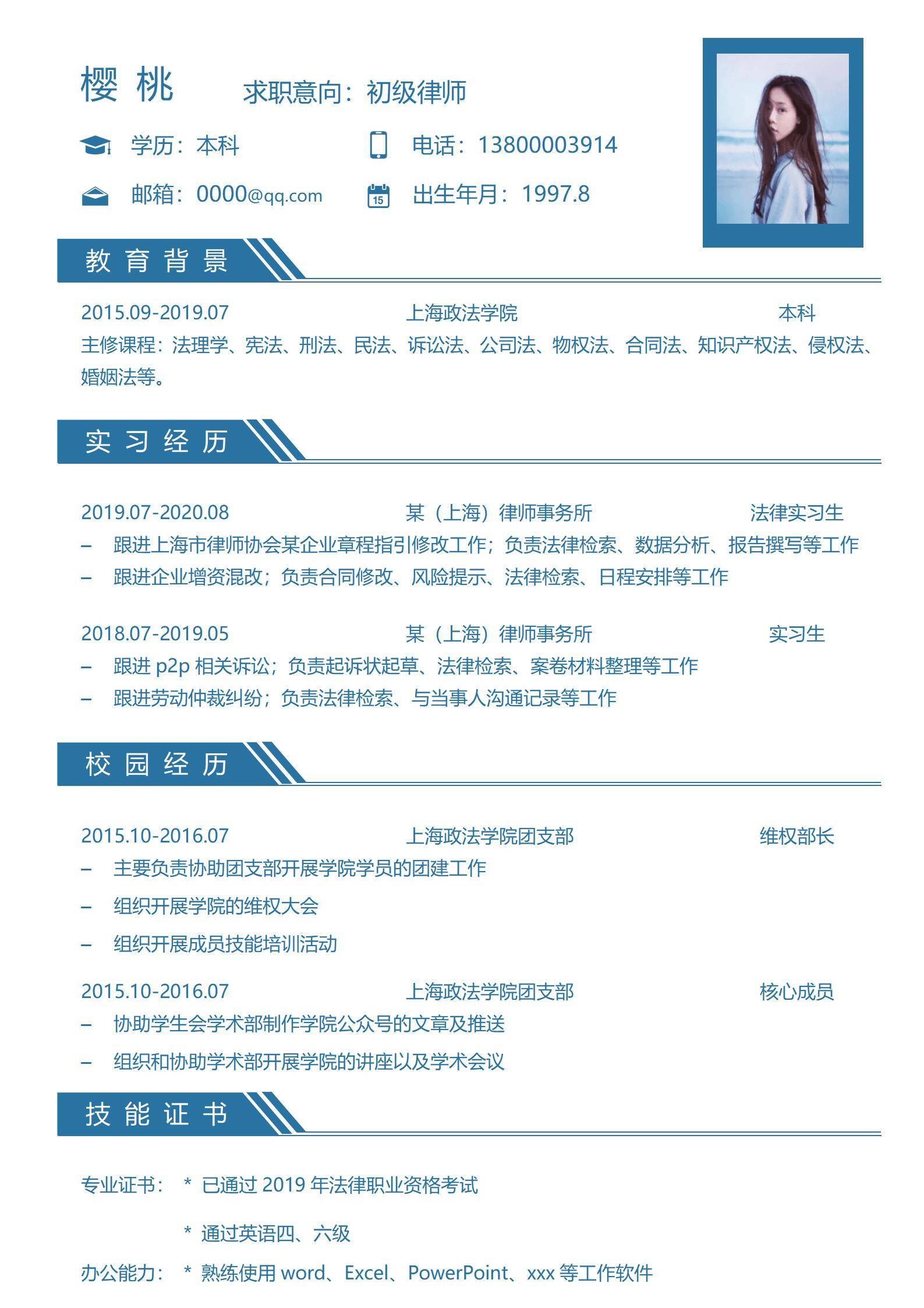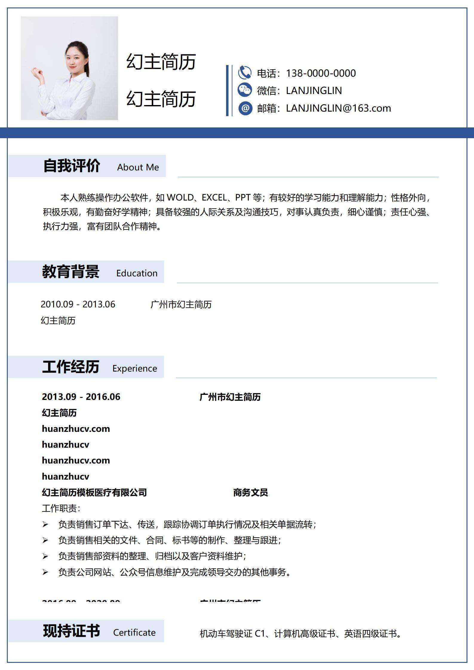 简洁大方,简历模板不错