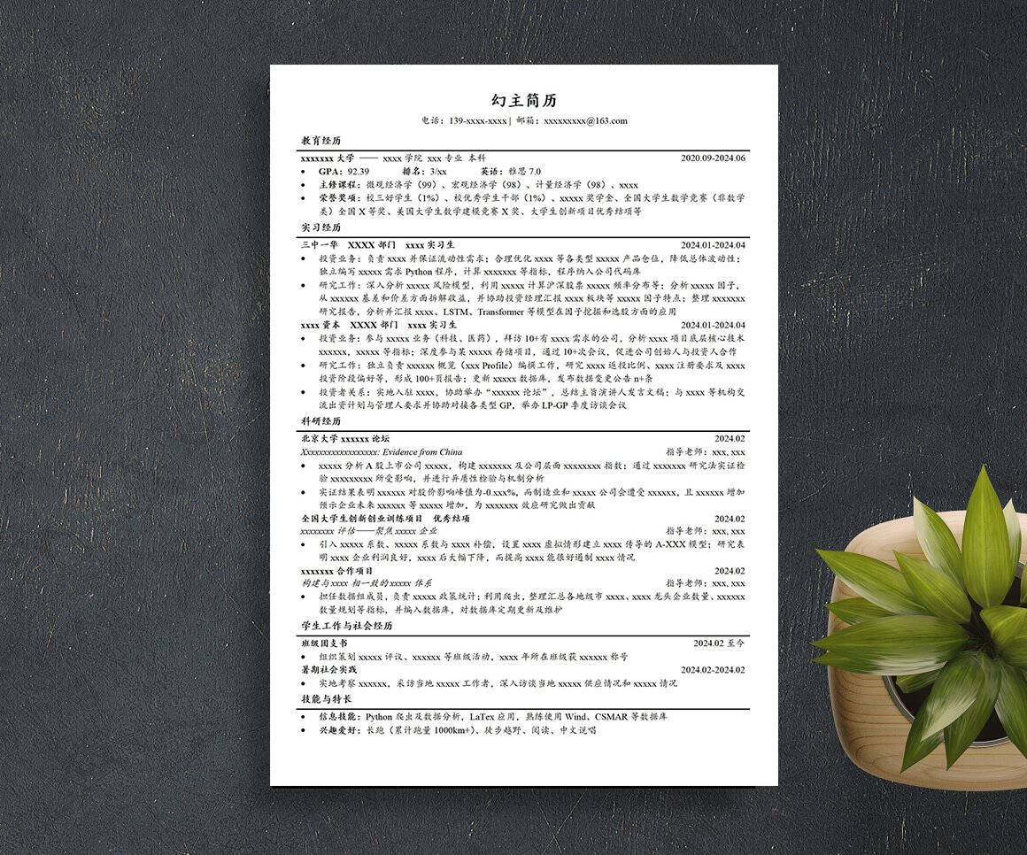 排版精制美化,让你在众多简历中脱颖而出,做好简历就来幻主简历