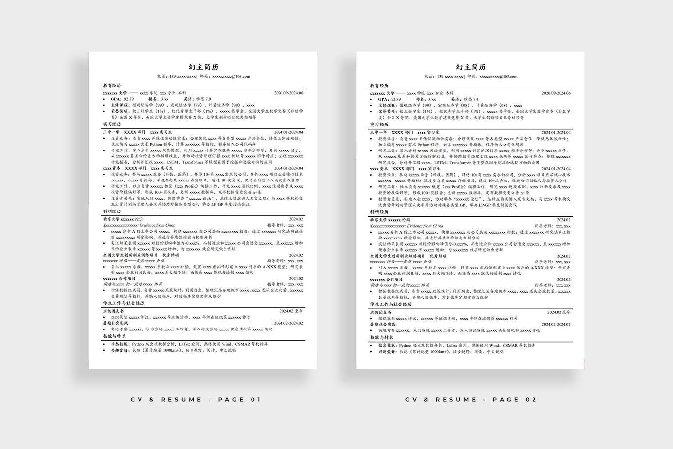 名称:中文简历模版保研上岸简历模板